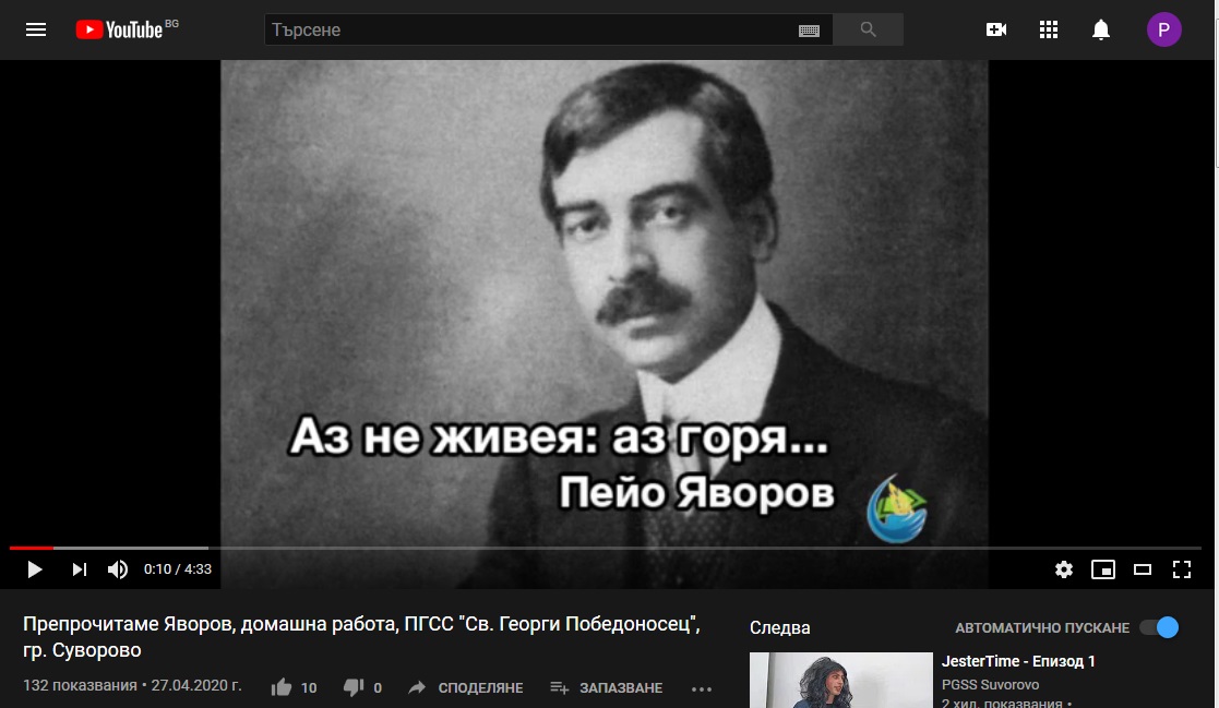 "Препрочитаме Яворов", домашна работа, изготвена от ученици от XI клас на ПГСС "Св. Георги Победоносец", гр. Суворово. -