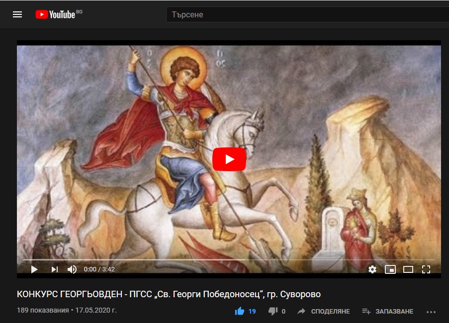 17.05.2020 г. ПГСС „Св. Георги Победоносец“, гр. Суворово обявява конкурс "Гергьовден"