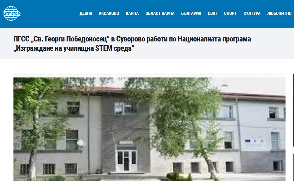 Паралел 43: "ПГСС „Св. Георги Победоносец“ в Суворово работи по Националната програма „Изграждане на училищна STEM среда“