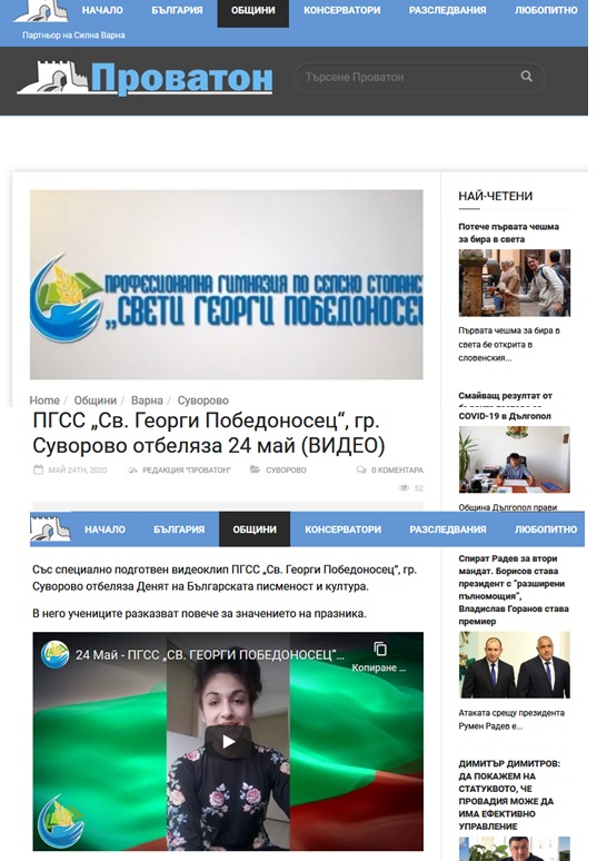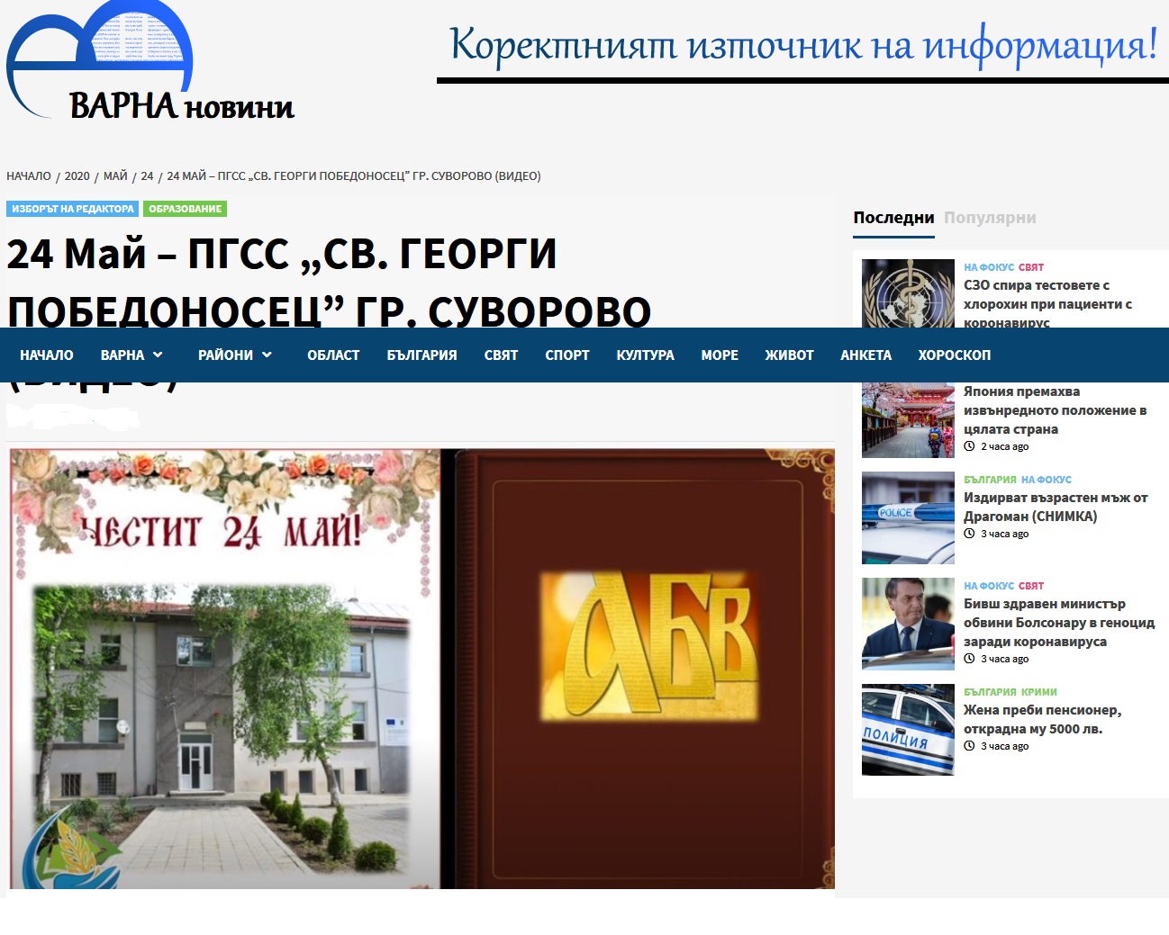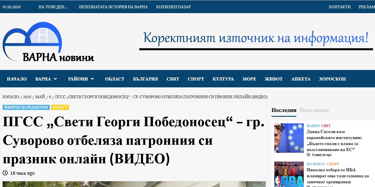 ВАРНА новини: ПГСС „Свети Георги Победоносец“ – гр. Суворово отбеляза патронния си празник онлайн.