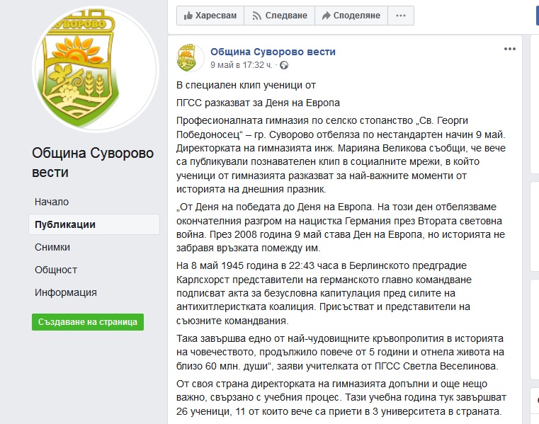 Община Суворово вести: В специален клип ученици от ПГСС разказват за Деня на Европа.