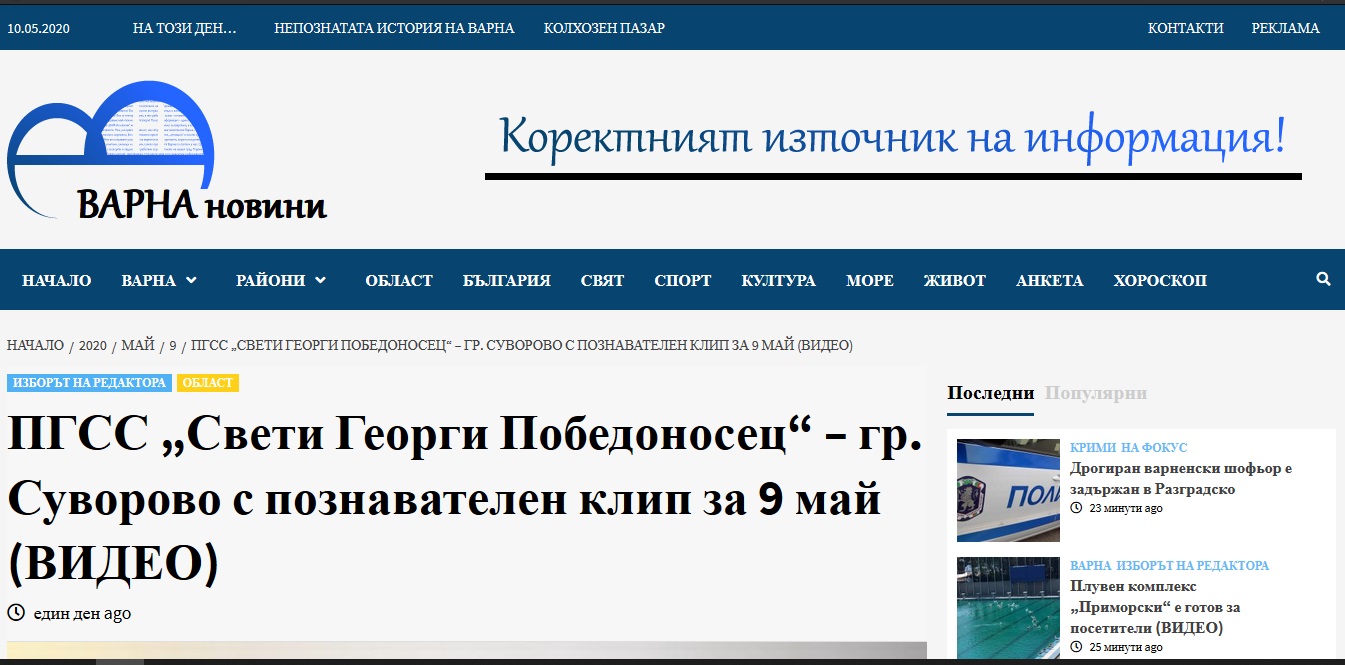 ВАРНА новини: ПГСС „Свети Георги Победоносец“ – гр. Суворово с познавателен клип за 9 май (ВИДЕО)