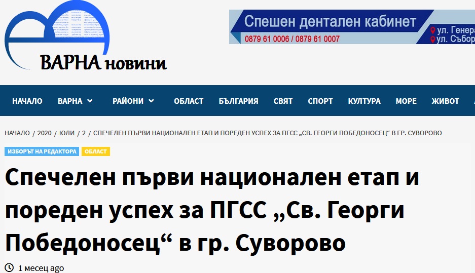 ВАРНА новини: "Спечелен първи национален етап и пореден успех за ПГСС „Св. Георги Победоносец“ в гр. Суворово"