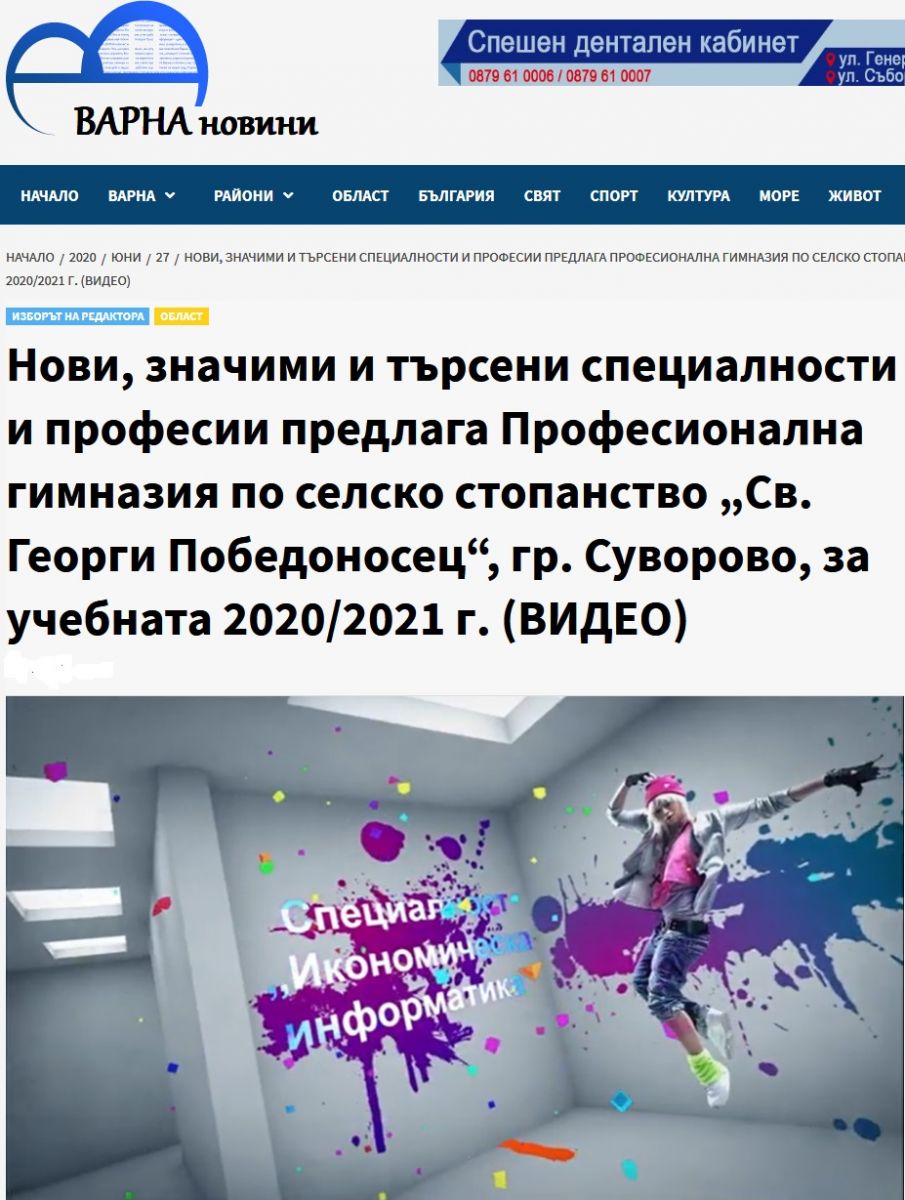 ВАРНА новини: "Нови, значими и търсени специалности и професии предлага Професионална гимназия по селско стопанство „Св. Георги Победоносец“, гр. Суворово, за учебната 2020/2021 г." (ВИДЕО)