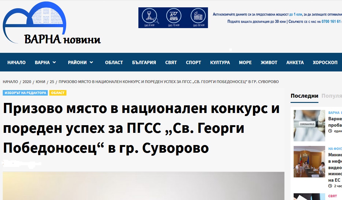 ВАРНА новини: "Призово място в национален конкурс и пореден успех за ПГСС „Св. Георги Победоносец“ в гр. Суворово"