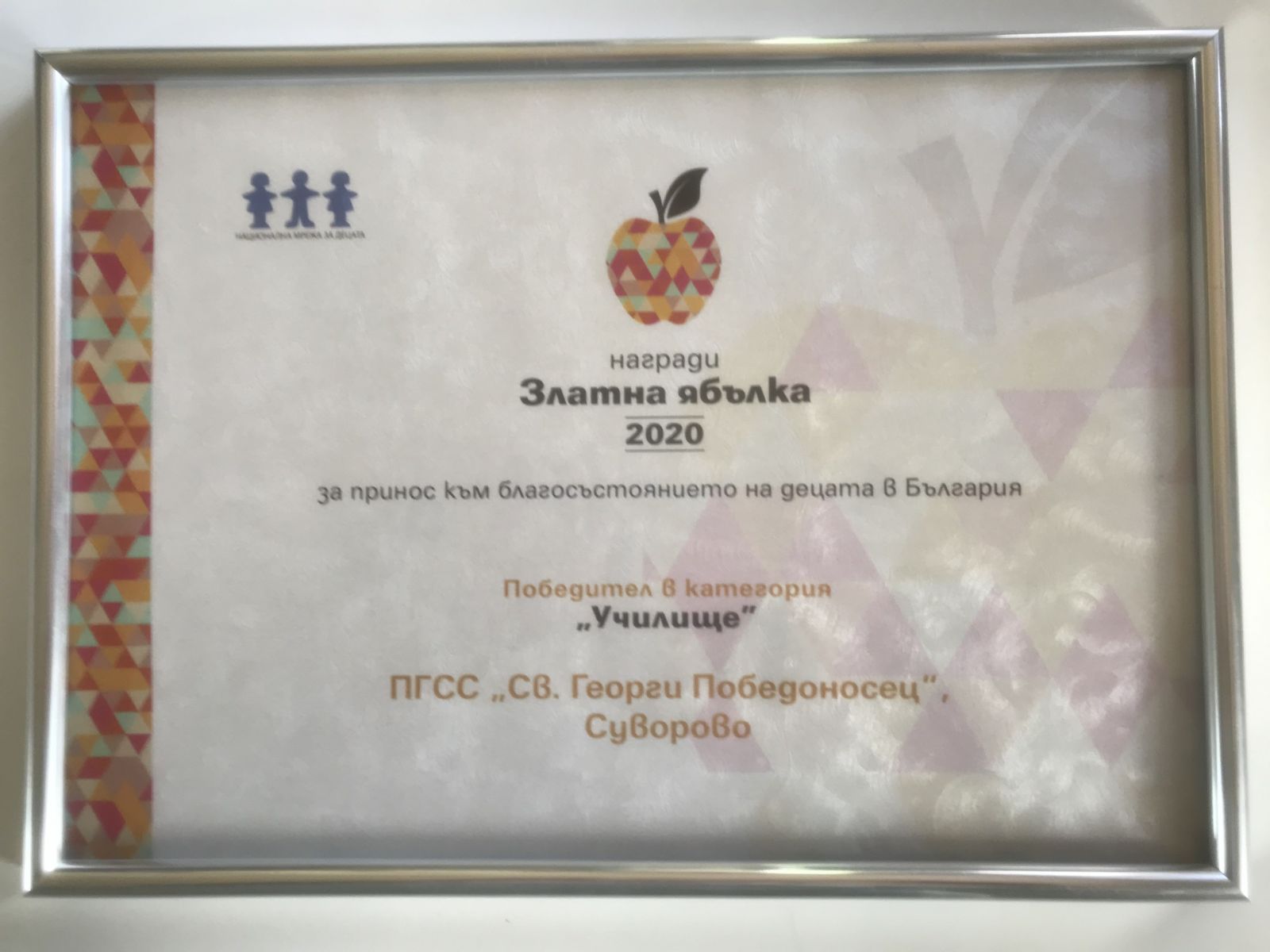 ПГСС "Св. Георги Победоносец" спечели награда „Златна ябълка“ на Националната мрежа за децата в категория "Училища"