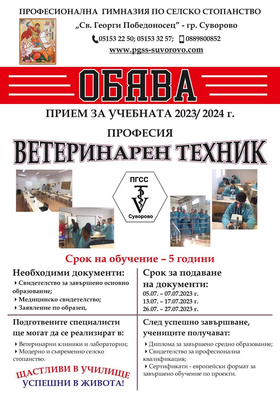 Специалност: „Ветеринарен техник”